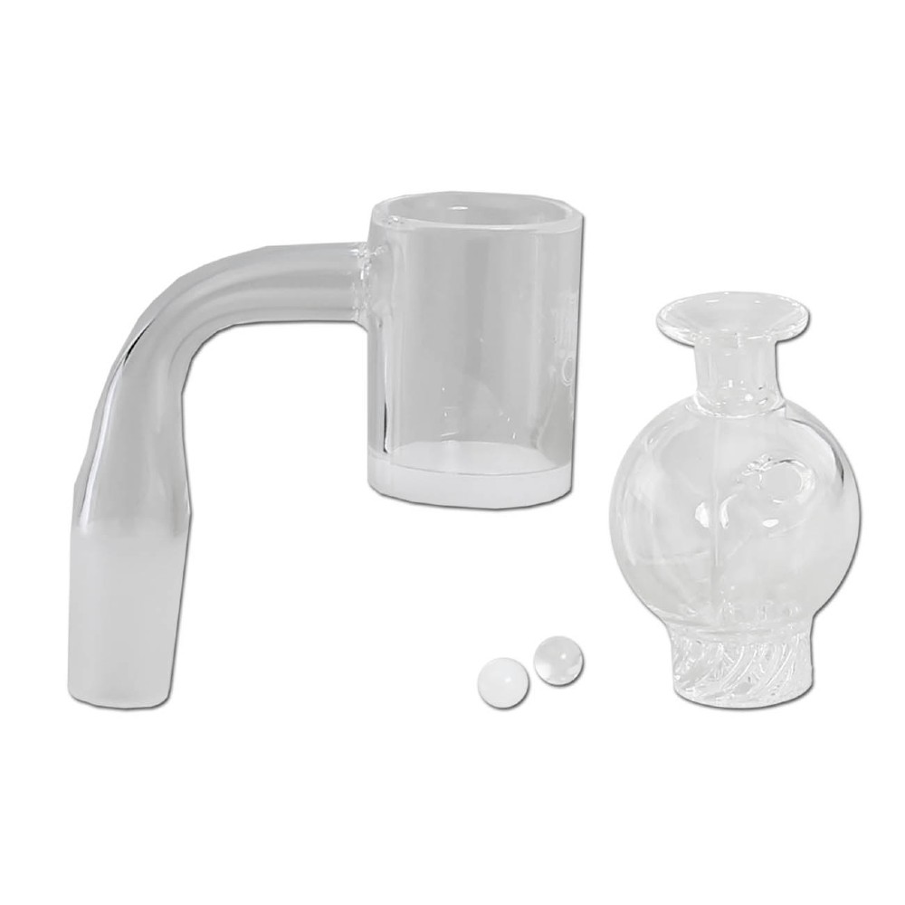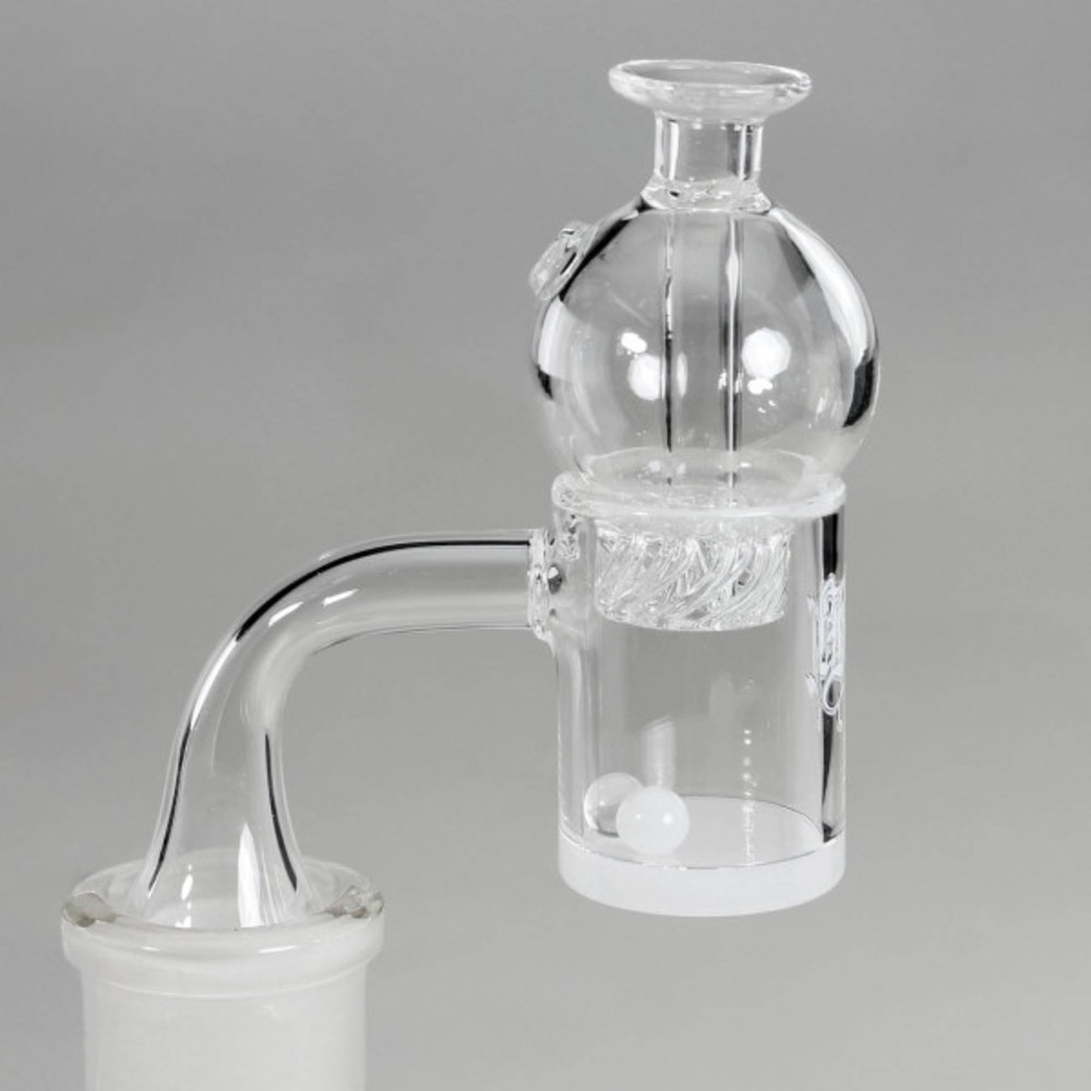 Quartz Banger met Cyclone Riptide Carb Cap & Terp Pearls